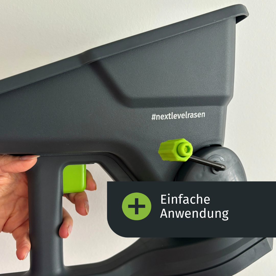 Ein ungleichmäßiges Streubild und vergessene Stellen im Rasen gehören der Vergangenheit an – mit dem Handstreuer von Turbogrün. Er gewährleistet ein gleichmäßiges und müheloses Ausbringen – sei es für Rasendünger oder -samen. Die präzise 5-stufige Mengenregulierung ermöglicht dir eine exakte Dosierung des Streuguts und sorgt für optimale Ergebnisse.