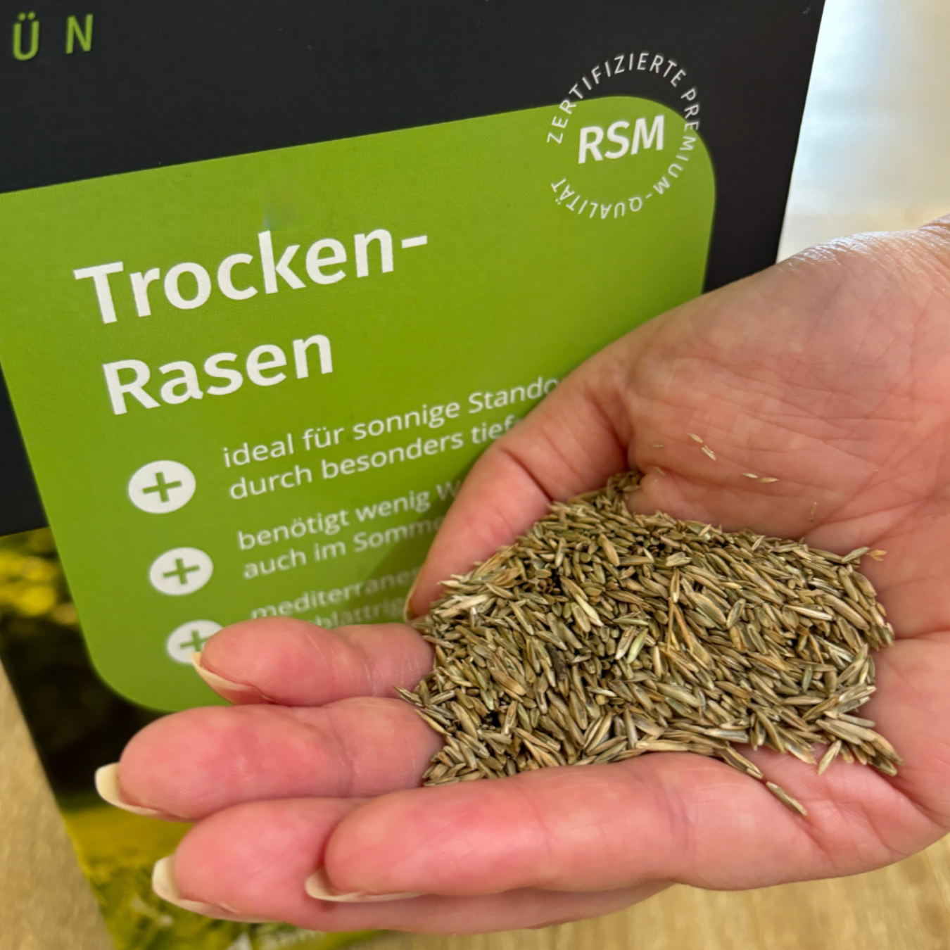Erstklassigen Trockenrasen-Samen mit RSM-Zertifizierung. Diese Samen sind ideal für die Neuanlage eines widerstandsfähigen Rasens mit breitblättrigen Gräsern.